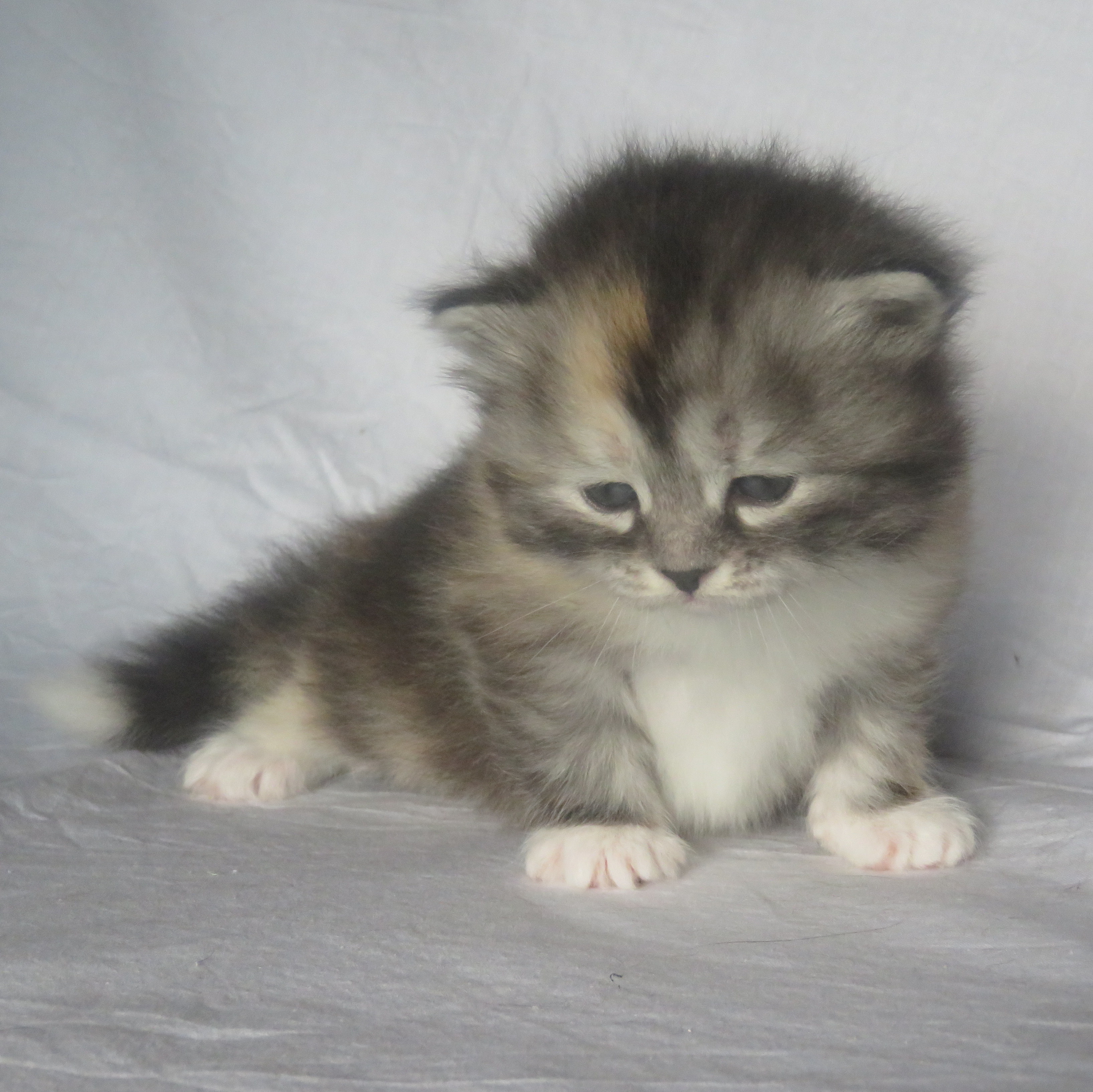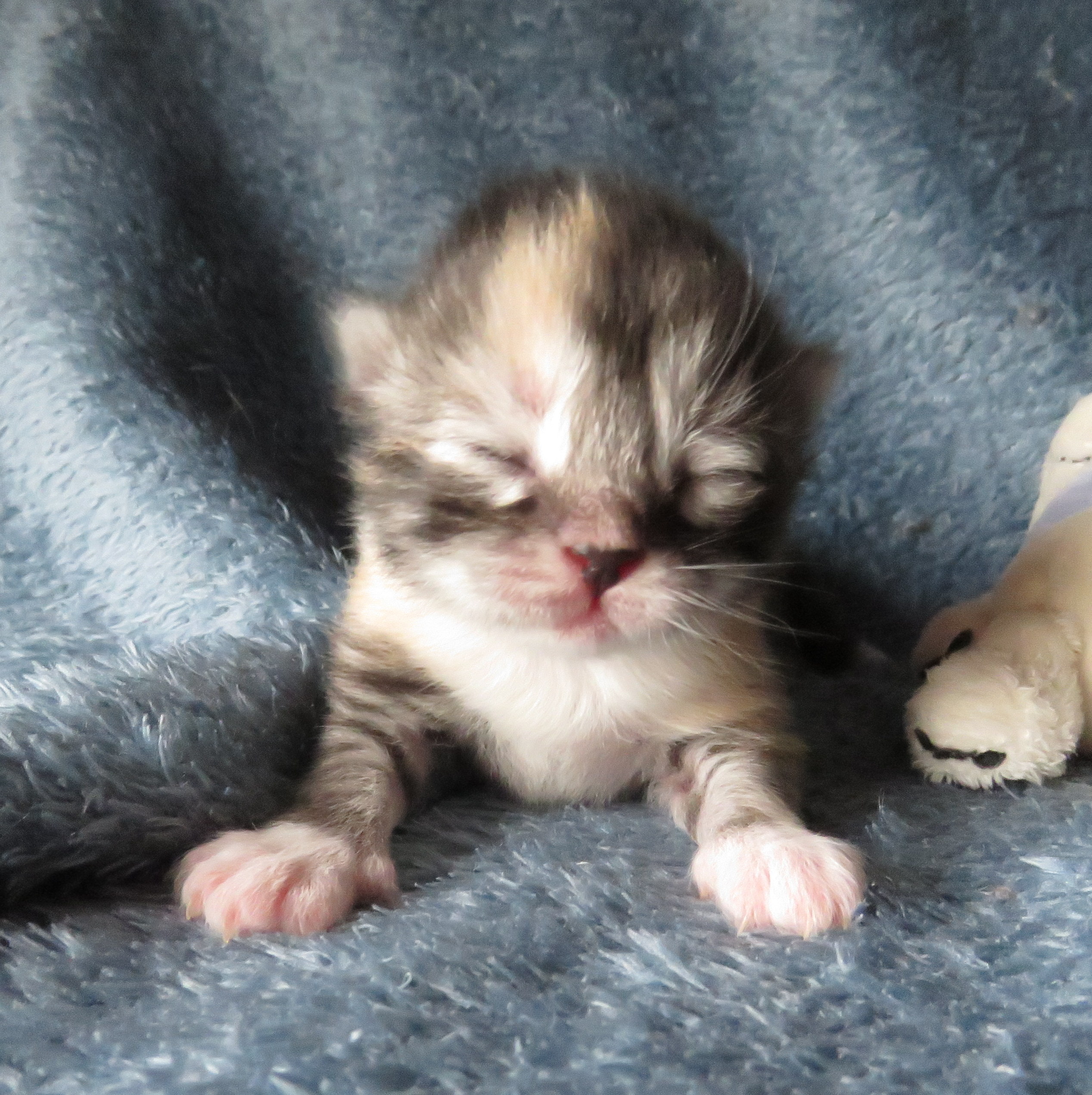 Origami dernière née mais la plus grosse de la portée. Une belle demoiselle toute tranquille qui adore le bon lait de maman.