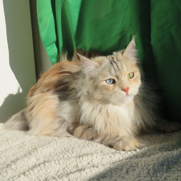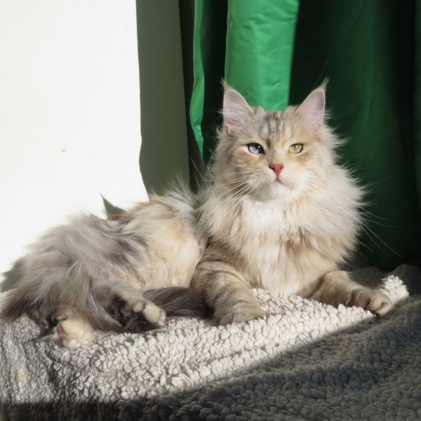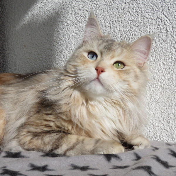 Elle représente comme Umi le résultat de 7 ans de travail, 6 génération d'yeux bleus chez nous, bref toute notre sélection autour du projet Norwin vers un chat argenté aux yeux bleus (0, 1 ou 2). Et surtout la 3e génération à être inscrite au Registre de Filiation pour la future nouvelle race de chats Norwins.